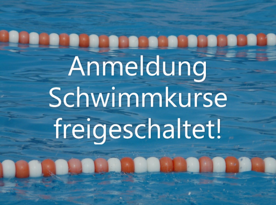 Die Anmeldung für die Schwimmkurse, die am 18.09.21 starten, beginnt für Neumitglieder am Sonntag, den 05.09.21 12Uhr. Nur bestimmte Teilnehmer, nämlich die Wiederholer aus den Sommerkursen, haben bereits einen Anmeldecode erhalten und können sich früher anmelden. Weitere Anmeldecodes werden nicht vergeben, Anfragen diesbezüglich sind zwecklos. ... Mehr erfahren